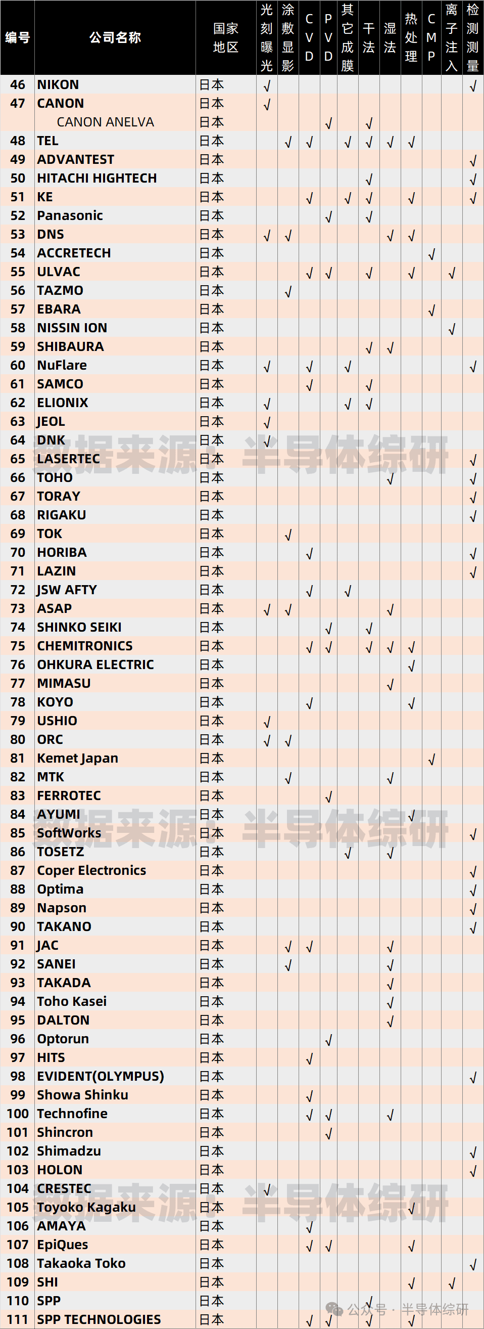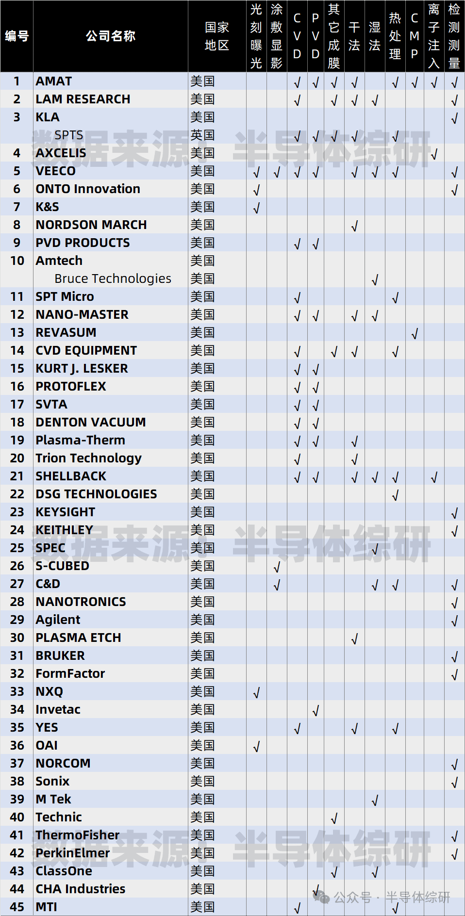 全球前道設(shè)備供應(yīng)商總名單