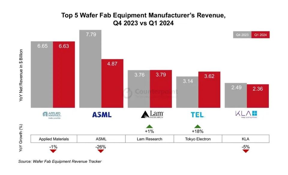根據(jù)Omdia發(fā)布的半導(dǎo)體總體競爭工具的最新數(shù)據(jù),2024年第一季度全球半導(dǎo)體市場遭遇約2%的下滑,市場規(guī)模減至1515億美元。這種季節(jié)性下滑通常在每年的第一季度發(fā)生,今年尤為明顯,市場總收入相比上一季度降低了4.4%,主要因為前一季度的季節(jié)性需求激增。此季度內(nèi),多數(shù)半導(dǎo)體細(xì)分市場均呈現(xiàn)下滑態(tài)勢,其中消費(fèi)類產(chǎn)品下滑最嚴(yán)重,比2023年第四季度減少10.4%,工業(yè)領(lǐng)域因庫存調(diào)整下滑8.5%,而過去幾年持續(xù)穩(wěn)定增長的汽車領(lǐng)域也出現(xiàn)5.1%的負(fù)增長。