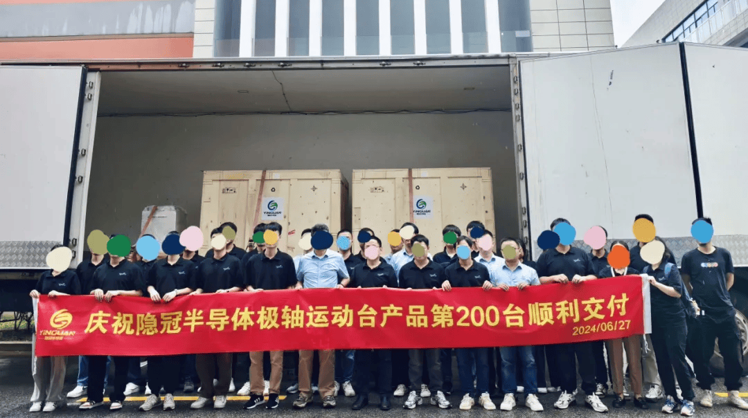 2024年6月27日,隱冠半導體自主研發(fā)生產(chǎn)的第200臺極軸運動臺成功發(fā)運交付客戶!隱冠的研發(fā)、生產(chǎn)與后臺支撐團隊共同見證了這一重要里程碑。